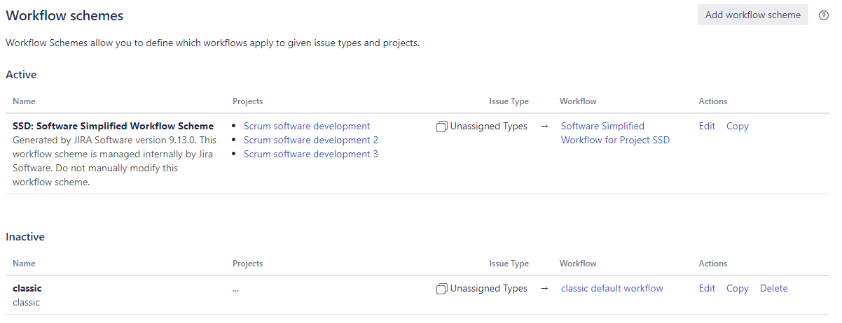 - If you access this page to find which Scheme is used for a set of project, it is correct to expect to see all projects for all Workflow Schemes