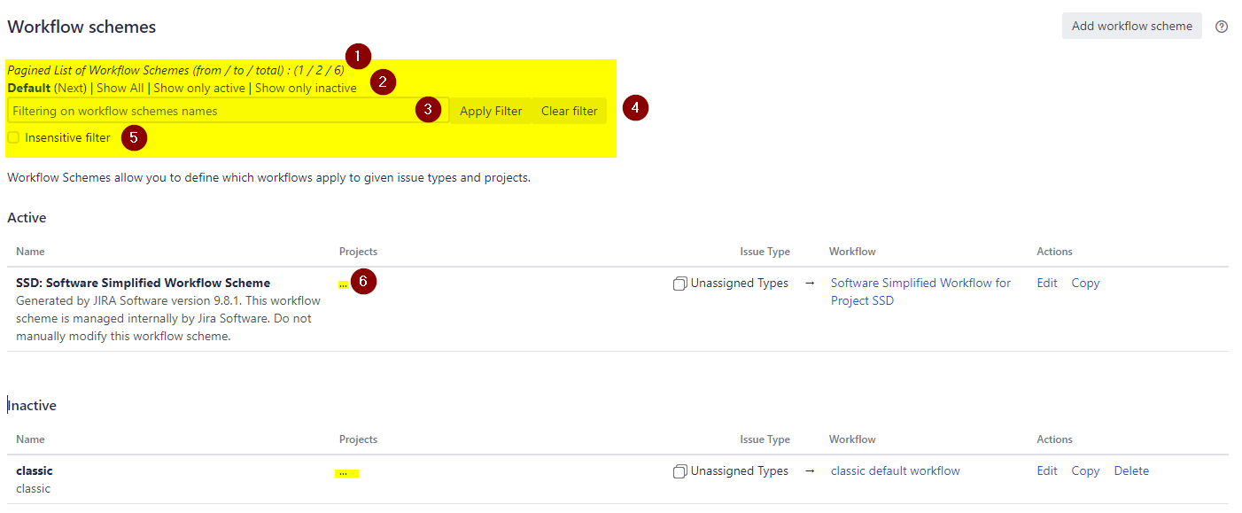 - Show only inactives : To reload the page with only inactives Workflows Schemes without loading Project Usages ,