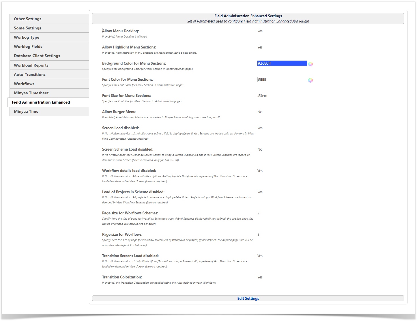 Different settings are introduced by Alkaes JIRA Plugin Field Administration Enhanced allowing to enable/disable/configure its features.