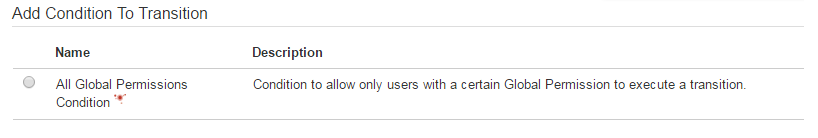 <condition type="class"> <arg name="class.name">fr.alkaes.myaa.workflow.condition.GlobalPermissionCondition</arg> <arg name="permission">GlobalPermissionKey</arg> </condition>
