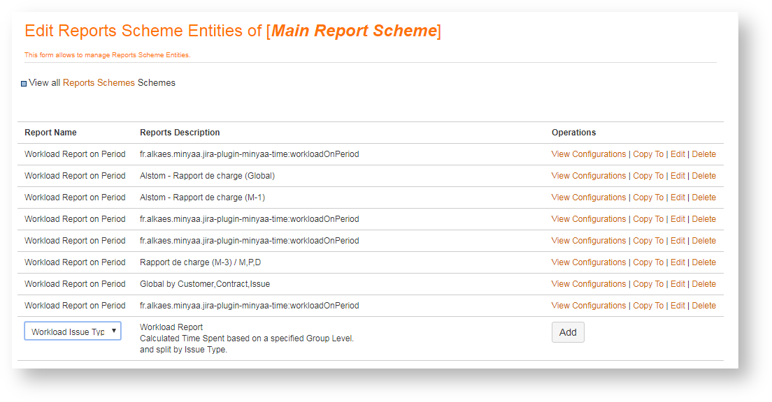 The ability to Copy is direct way to populate your own Report Schemes with Reports Scheme Entity. See more in section Configuring Report Configurations.