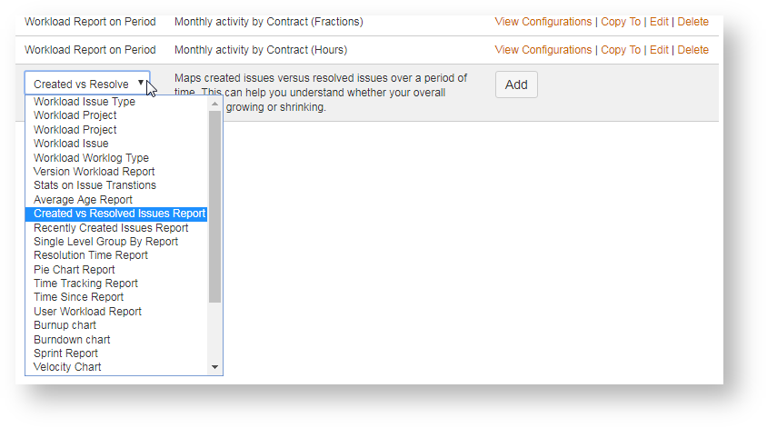 By adding the selected JIRA Report, among all available JIRA Reports,