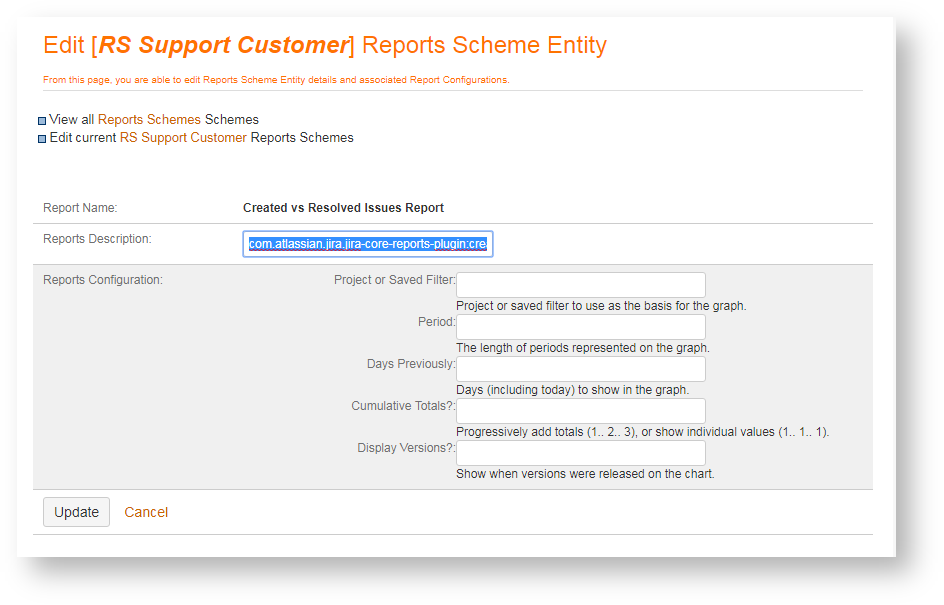 - Edit a Reports Scheme Entity's Description,