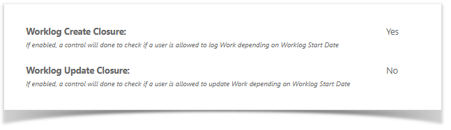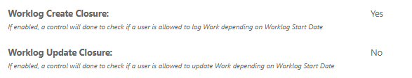 These Closure rules can be override with Create Old Worklog Permission, Update Old Worklog Permission
