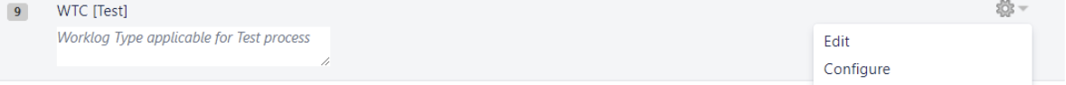 | Configurations | It represents the list of Worklog Types that you have identified as relevant for an Issue Type, related a Project Model. |