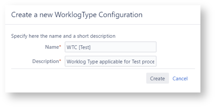 | Name | The name of the Worklog Type Configuration. A good practice is to respect an unified nomenclature for all your configurations. |