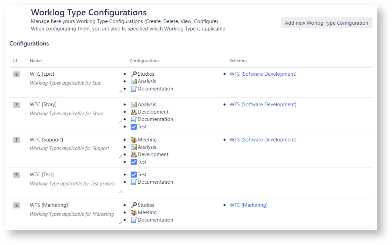 List of Worklog Type Configurations