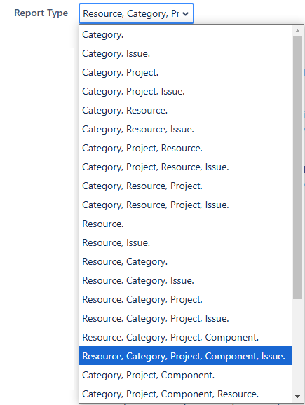 Note that, when selecting a new combination of Aggregation criteria, the resulting combination will be added a new predefined Report Types for others reports. - The Administrator can also define/restrict default combination of aggregation (See Workload Reports in Minyaa Time Settings ).