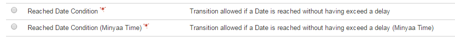 This condition allows the transition if a Date is reached without having exceed a delay expressed in seconds.