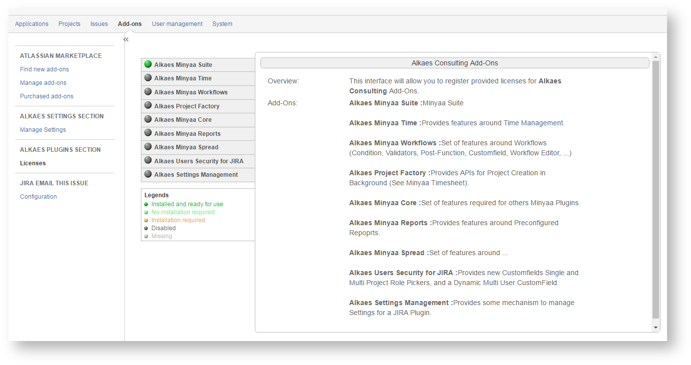 - And the list of embedded plugins : Alkaes Plugins that are deployed with the Editions.
