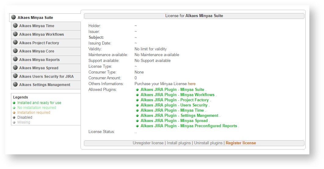 - Go to ALKAES PLUGINS SECTION / Licenses