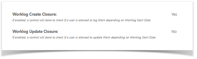 These Closure rules can be override with Create Old Worklog Permission, Update Old Worklog Permission